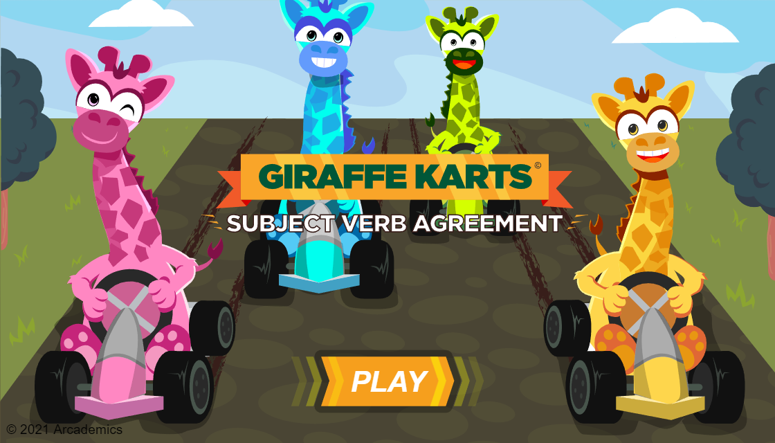 Giraffe Karts is a multiplayer language arts game that allows students from anywhere in the world to race against each other while practicing subject verb agreement!